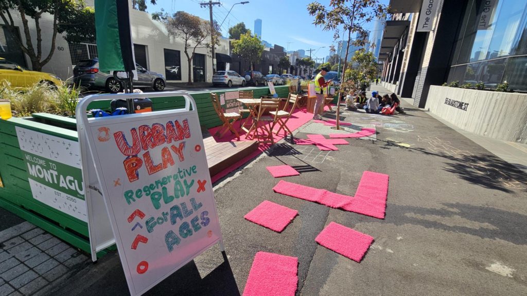 The future play lab were a part of the Greville St Library opening festivities – we hosted a Lego workshop inside, and playbusking outside in the parklet.