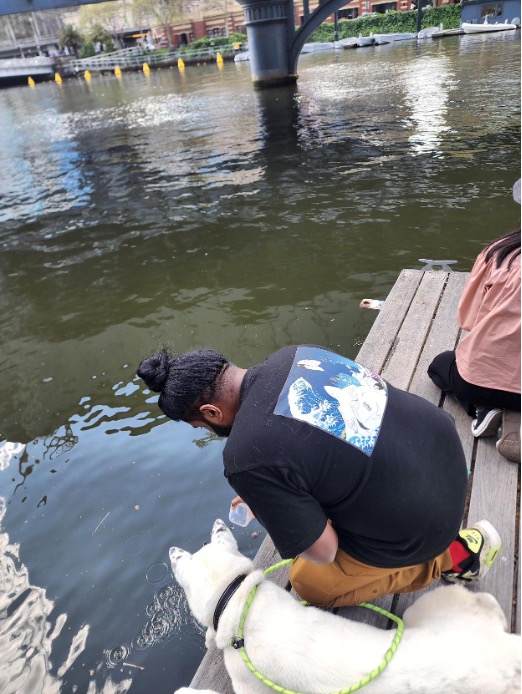 Joining this iteration of the experience were a diverse group of professionals – three creative producers, two environmentalists, one researcher, one physiotherapist and a very friendly dog. Seeing as not everyone knew each other, I opened the walk by inviting everyone to introduce themselves with their name, where they were joining us from, and a small reflection on their connection to water.